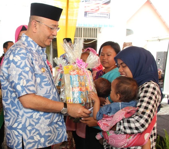 Wali Kota Medan Dzulmi Eldin Memberikan Makanan Tambahan Bagi Balita usai Meresmikan Puskesmas Sicanang