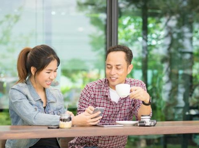 Ilustrasi perempuan curhat dengan om-om / lelaki yang lebih tua [Shutterstock]