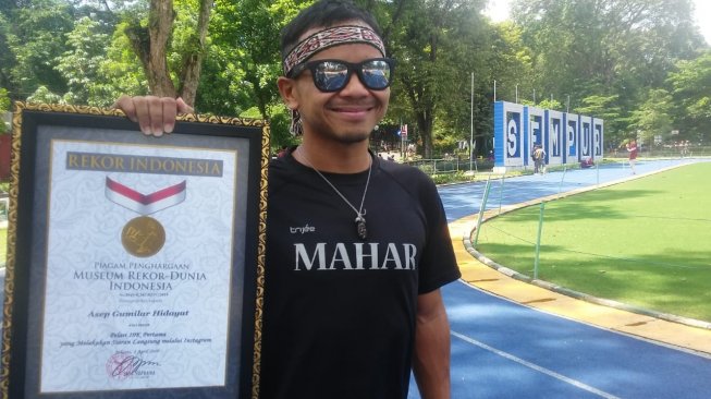 Asep Gumilar Hidayat meraih rekor MURI dengan lari 10K sambil live di Instagram.(Suara.com/Rambiga)