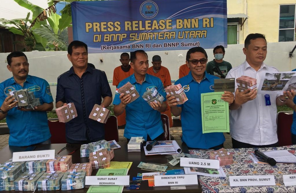“Uang Rp 2,5 miliar ini diputar mereka untuk membeli barang-barang. Makanya kita miskinkan, kalau tidak begitu, mereka akan terus memutar uang hasil kejahatan untuk membeli barang-barang haram lagi,” kata Direktur TPPU BNN Brigjen Bahagia Dachi di Kantor BNNP Sumut di Jalan Wiliam Iskandar, Percut Sei Tuan, pada Jumat (12/7).