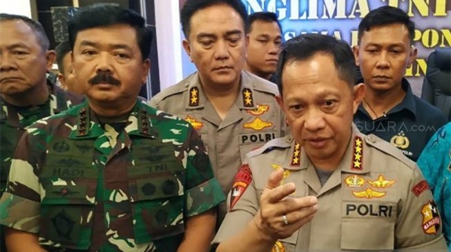 MEDANHEADLINES.COM – Kepala Kepolisian Indonesia Jenderal Tito Karnavian dan Panglima TNI Marsekal Hadi Tjahjanto akan berkantor di Papua selama sepekan. Hal itu dilakukan untuk meredam kerusuhan di sana.
