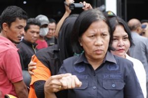 Perempuan 41 tahun itu tak mampu mengangkat kepalanya saat diboyong ke Warunk Everyday. Sebuah kafe di bilangan Ringroad, Kata Medan. Kafe yang tengah direnovasi itu dijaga ketat polisi sepanjang reka adegan berlangsung.
