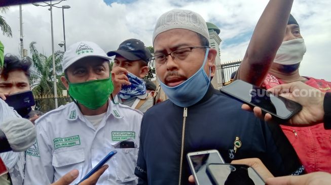 Ketua PA 212, Slamet Maarif usaibertemu dengan pimpinan DPR. (Suara.com/Yosea Arga)