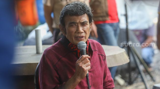 Pedangdut Rhoma Irama ketika ditemui awak media saat perayaan 50 tahun berkarya dengan Soneta Grup di Depok, Jawa Barat, Selasa (8/12). [Suara.com/Alfian Winanto]