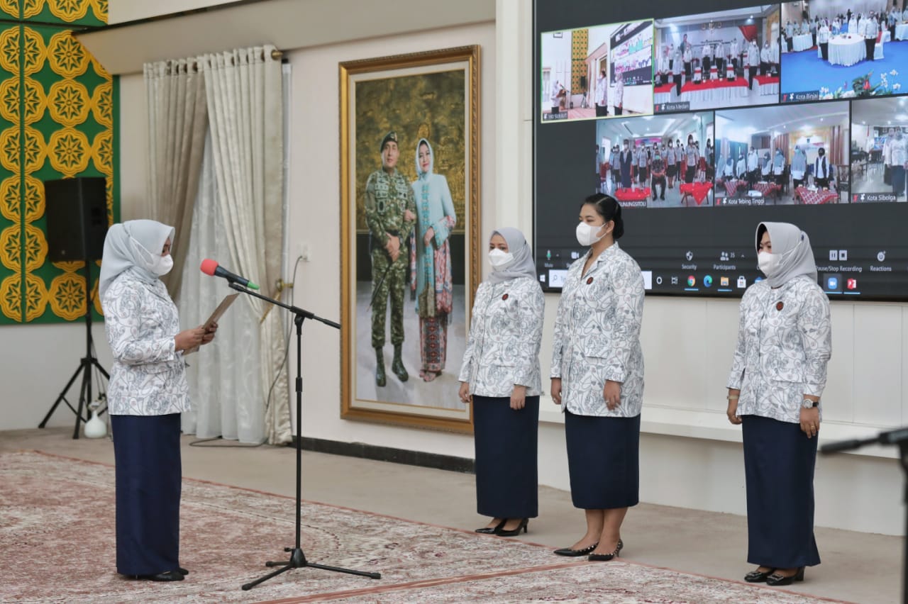 MEDANHEADLINES.COM, Medan – Ketua TP PKK Kota Medan Ny Kahiyang Ayu Bobby Nasution dilantik sebagai Ketua Yayasan Kanker Indonesia (YKI) Cabang Kota Medan periode 2021-2025. Pelantikan ini dilakukan oleh Ketua Yayasan Kanker Indonesia (YKI) Sumut Ny Nawal Lubis Edy Rahmayadi di Rumah Dinas Gubernur Sumut, Jalan Sudirman, Jumat (25/6)