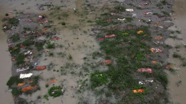 Ratusan mayat bermunculan di Sungai Gangga, India usai diterjang banjir musiman. (Foto: Sanjay KANOJIA/AFP)