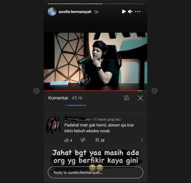 “Jahat banget yaa masih ada orang yang berfikir kaya gini,” balas Aurel, sambil menyisipkan emoji menangis.