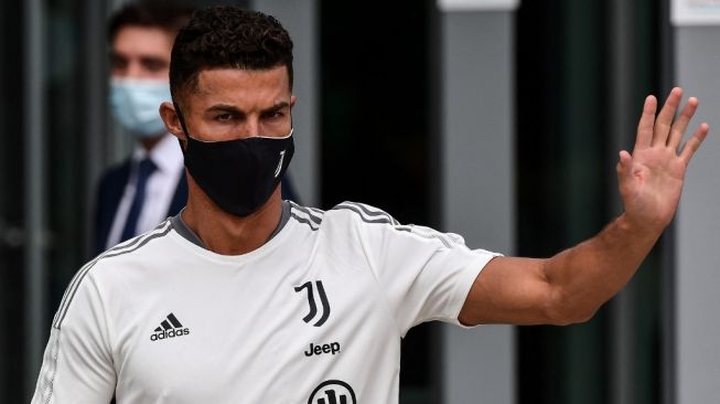 Megabintang Juventus, Cristiano Ronaldo bersiap melakoni latihan untuk masa pramusim jelang kampanye 2021/2022. [Miguel MEDINA / AFP]
