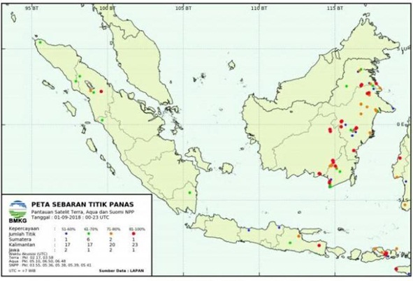 MEDANHEADLINES.COM, Medan – Badan Meteorologi, Klimatologi, dan Geofisika menyebut adanya empat titik panas yang terpantau melalui Satelit Tera, Aqua, SNPP, dan NOAA20 di sejumlah wilayah di Provinsi Sumatera Utara.