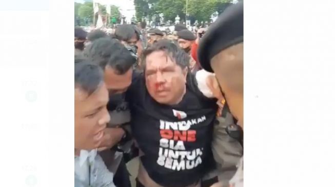 Selain itu, foto Ade Armando tampak dibawa petugas kepolisian untuk mendapat pertolongan juga beredar.