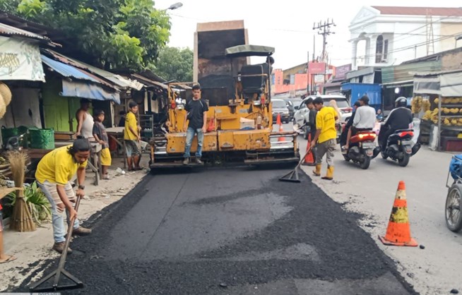 MEDANHEADLINES.COM, Medan – Dinas Pekerjaan Umum (PU) Medan melalui UPT Operasional Pemeliharaan Jalan dan Drainase Wilayah Medan Utara terus bergiat membenahi infrastruktur yang merupakan salah satu program prioritas Wali Kota, Bobby Nasution. Pengaspalan demi pengaspalan pun dilakukan, termasuk di kawasan Medan Utara.