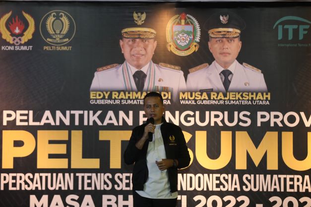 MEDANHEADLINES.COM, Medan – Wakil Gubernur (Wagub) Sumatera Utara (Sumut) Musa Rajekshah berharap pada Pekan Olahraga Nasional (PON) 2024 nantinya, cabang olahraga tenis bisa menyumbang medali emas untuk Sumut. Hal itu disampaikannya saat acara Pelantikan Pengurus Provinsi Pelti Sumut masa bakti 2022-2027 di Medan Club, Jalan RA Kartini Medan, Sabtu (10/9) malam.