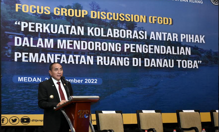 Hal tersebut disampaikan Gubernur dalam sambutannya pada Diskusi Kelompok Terarah Perkuatan Kolaborasi Antara Pihak Dalam Mendorong Pengendalian Pemanfaatan Ruang di Danau Toba, yang digelar Direktorat Jenderal Pengendalian dan Penertiban Tanah dan Ruang, Kementerian Agraria dan Tata Ruang/Badan Pertanahan Nasional (ATR/BPN), di Hotel Santika Dyandra Medan, Jalan Raden Saleh, Medan, Kamis (24/11).