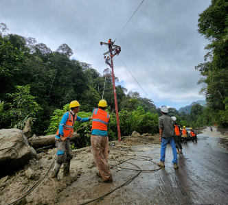 Upaya percepatan recovery gangguan pasca longsor. PLN melakukan perbaikan konstruksi tiang Tegangan Menengah (TM) yang rusak, mengganti kabel A3C 150 mm² sepanjang 0,2 kms dan mengganti tiang beton 12 meter sebanyak 1 batang.