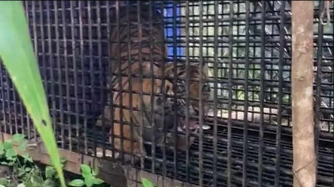 Kekinian harimau Sumatera itu dibawa pihak Dinas Kehutanan untuk dilaksanakan rehabilitasi. (red/suara.com)