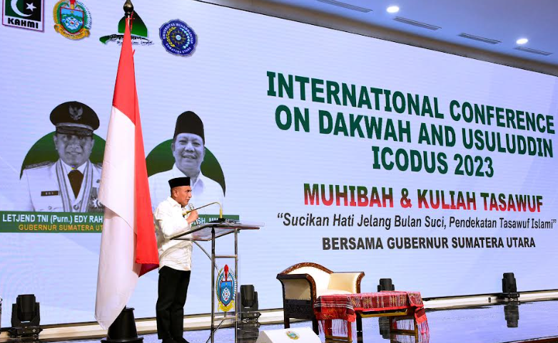 Hal itu disampaikan Gubernur Edy Rahmayadi pada acara International Conference on Dakwah and Usuluddin 2023, Muhibah dan Kuliah Tasawuf bertema Sucikan Hati Jelang Bulan Suci, Pendekatan Tasawuf Islami, di Aula RIS Kantor Gubernur, Selasa (28/2). Hadir di antaranya Tuan Guru Syaikh Jahid bin Sidek Al-Khalidi dari tarekat Naqsabandiyah Malaysia, Ketua Majelis Wilayah Koprs Alumni Himpunan Mahasiswa Islam (Kahmi) Sumut Rusdi Lubis, Ustaz Zulfikar Hajar, Ustaz Amiruddin, Ustaz Abdul Latif Khan, serta seratusan tamu dari negeri jiran Malaysia.