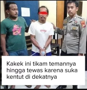 Menurut narasi artikel pemberitaan yang dikutip akun itu, disebutkan jika aksi pembunuhan kakek BD terhadap rekannya cuma karena sering kentut terjadi di Sulawesi Barat, Minggu (5/3/2023) lalu.