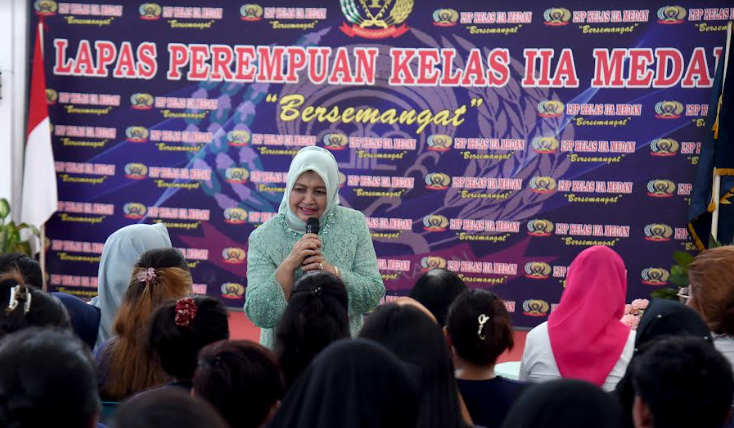 MEDANHEADLINES.COM – Ketua Tim Penggerak Pemberdayaan Kesejahteraan Keluarga (TP PKK) Sumatera Utara (Sumut) Nawal Lubis memperingati Hari Kartini bersama warga binaan Lapas Perempuan Kelas II A Medan. Bersama Perempuan Berkebaya Indonesia (PBI) Sumut, Nawal bercengkrama dengan ratusan warga binaan Lapas yang berlokasi di Jalan Permasyarakatan Tanjung Gusta, Medan tersebut.