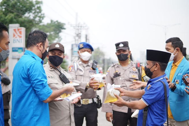 Wali Kota Medan Dzulmi Eldin Saat Memasangkan Bendera di Spion Sepeda Motor Warga MEDANHEADLINES.COM, Medan…